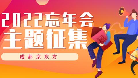 成都京东方2022年忘年会主题征集活动正式开启!不平凡的2021注定留下浓墨重彩的一笔,你觉得2022年忘年会什么样的关键词更符合我们?忘年会是对我们一年以来工作成果的一次检阅;是展示团队风采的一次盛典;是一年一度不可或缺的家庭盛会;是我们激扬士气,部署战略,明确目标,奏响新一年度工作的序曲!目标蓝图已绘就,冲锋的号角依然回荡……请全体干部员工发挥“当家做主”的主人翁精神,玩转创意、找寻灵感、施展才华,大声说出你期待的忘年会主题吧!一、征集内容:2022忘年会主题二、征集要求:10字以内;主题鲜明,寓意深刻(贴近公司发展及企业文化);能量满满,温暖接地气;鼓舞人心往年主题参考:2019年“夜空中最亮的星”;2020年“化茧为蝶”(化简为叠)三、征集范围:成都京东方全体员工四、征集方式:点击立即报名,填写个人信息,填写主题内容及主题释义即可五、有奖征集:忘年会主题一旦被采纳,将获得1188元等值激励品!