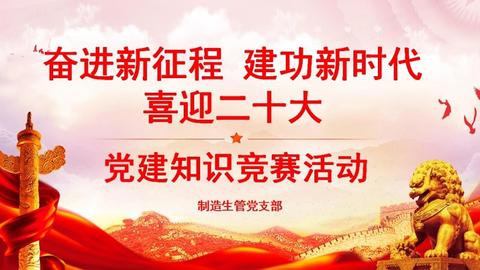 为庆祝中国共产党成立101周年,进一步加强党员的思想建设、组织建设、文化建设,激励全体党员不忘初心、牢记使命,提升支部队伍整体素质。我支部通过开展《奋进新征程 建功新时代》喜迎二十大党建知识竞赛活动,让支部全体党员、预备党员、发展对象和积极分子们强化党员的身份意识、责任意识、发挥党员先锋模范作用。【活动场地、时间】 线下答题 2022.9-10【活动对象】 1.党员、预备党员、发展对象、积极分子共计37人 2.邀请党支部书记参加【活动形式】本次活动将通过线下党建知识竞赛答题开展【奖励设置】 本次参与线下党建知识答题分9组每组4人,排名前4组将获得纪念品一份,其余人员获得参与奖一份